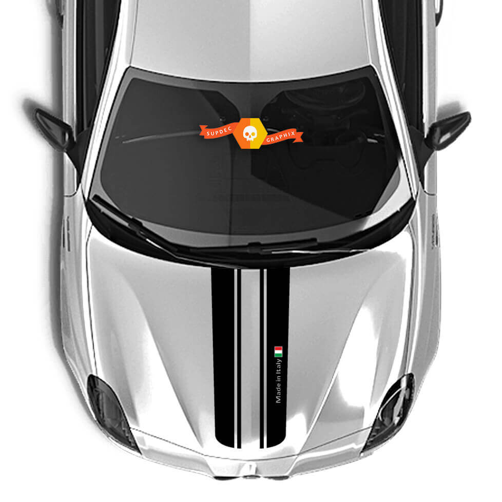 Het ontwerp van de "Made in Italy" sticker wordt aangevuld met een kleine Italiaanse vlag, wat zorgt voor een elegante en stijlvolle uitstraling. Deze motorkapstickers zijn ontworpen om de oorsprong van uw voertuig te benadrukken en een beetje Italiaanse flair toe te voegen.