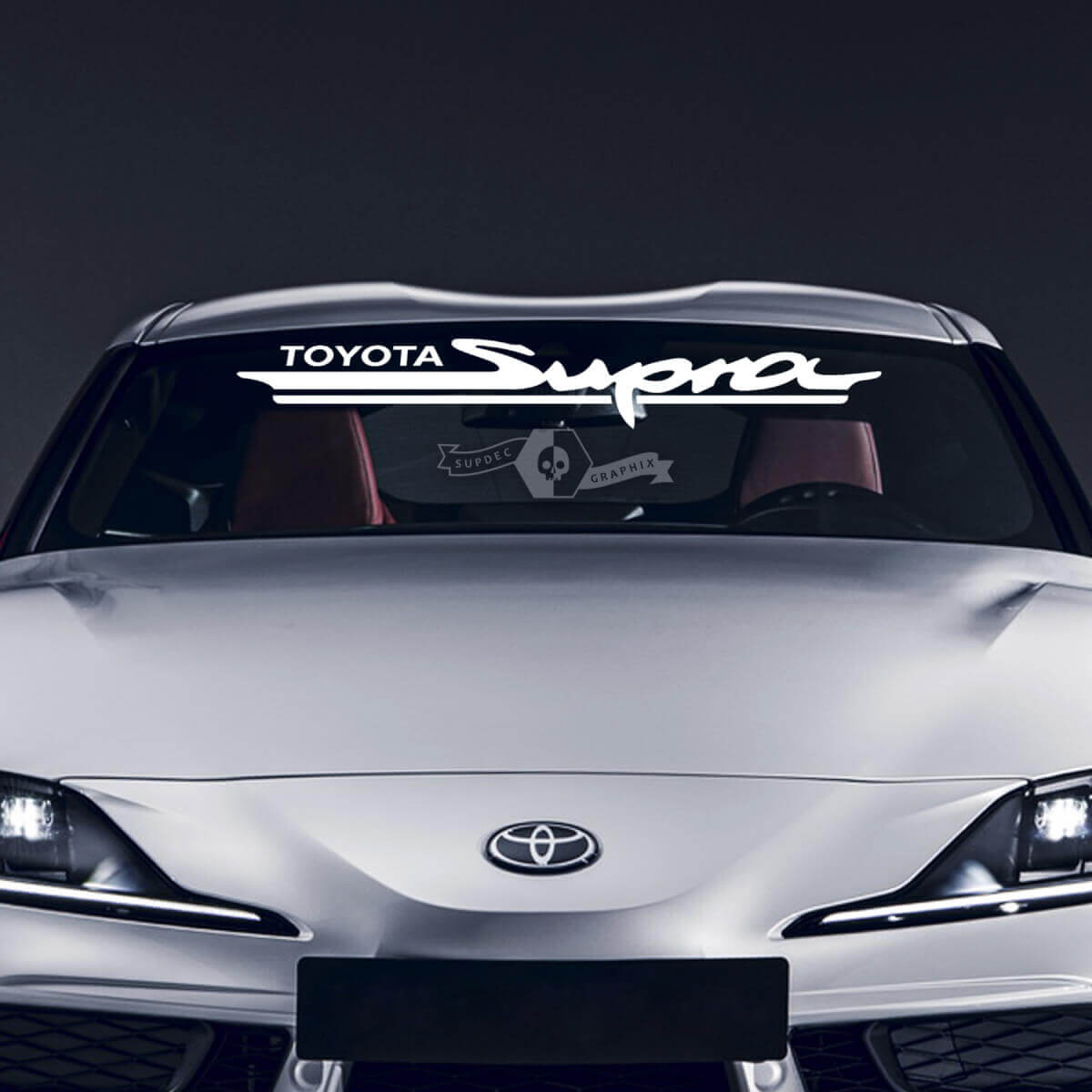 Als u klaar bent dat uw auto de blikvanger op de weg wordt, dan heeft u de juiste keuze gemaakt. Stickers voor de voorruit van uw Toyota Supra MKV zijn de perfecte optie.