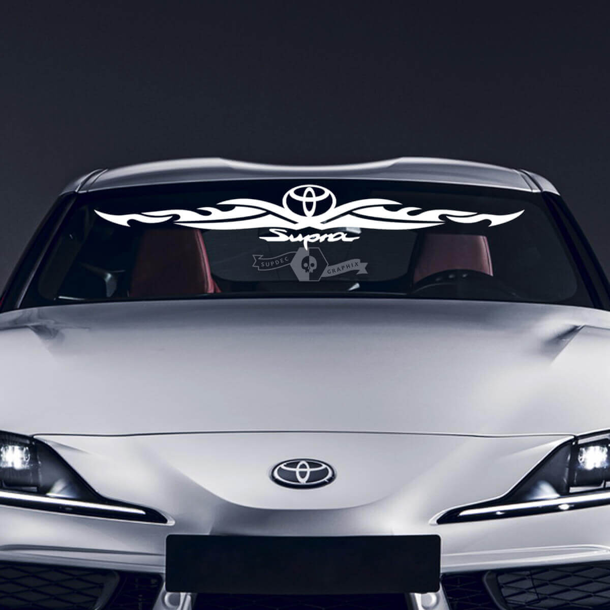 Als je het zat bent om in je Toyota Supra Tribal te rijden, weten wij hoe we je rit meer dan bijzonder kunnen maken. Onze voorruitstickers zijn speciaal ontworpen om jouw auto te laten opvallen tussen honderden anderen.