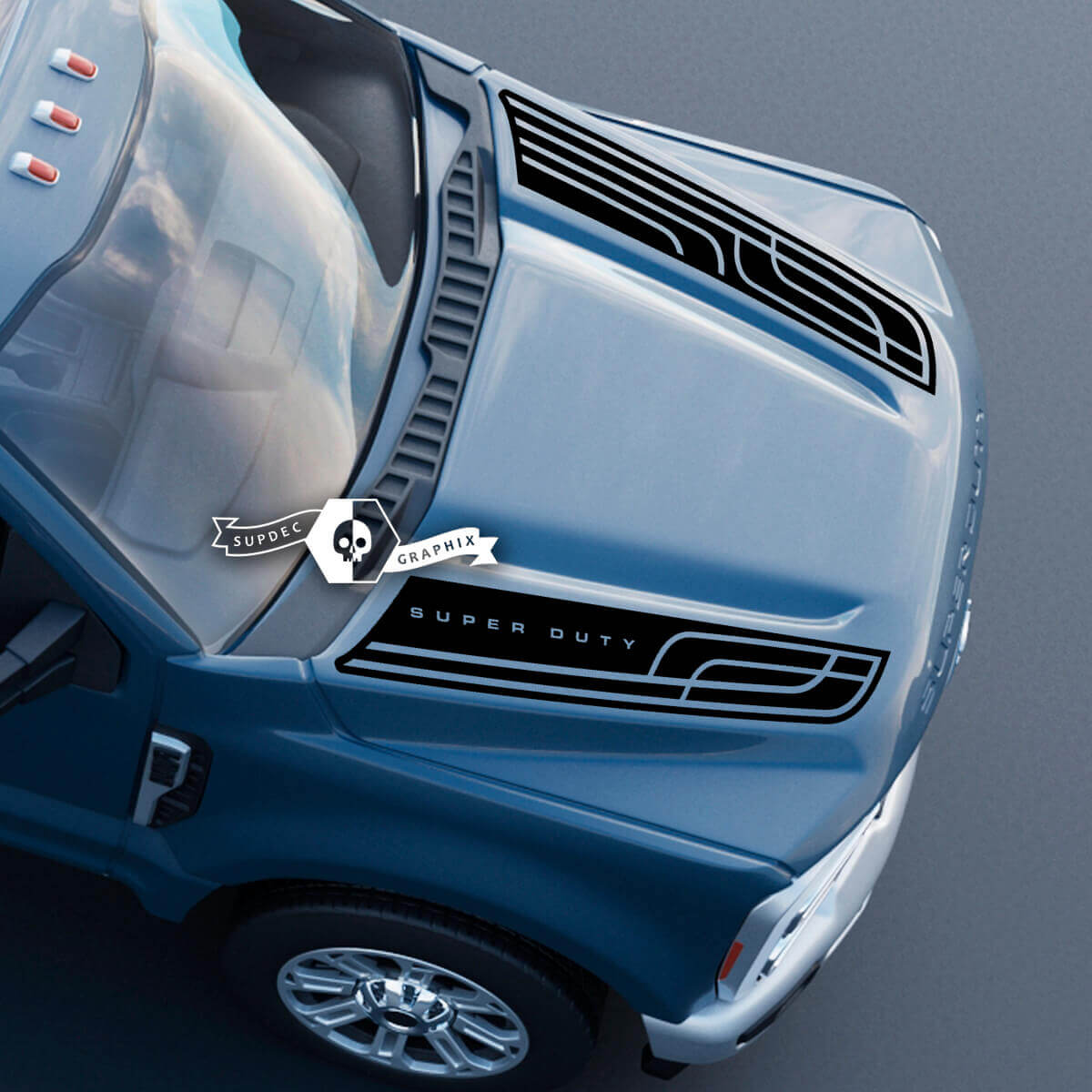 Motorkap Ford Super Duty 2023 lijnen Dual Decals Stickers Graphics Vinyl