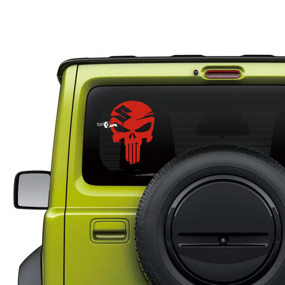 Upgrade uw Suzuki JIMNY met onze exclusieve Achterruit Logo Punisher vinyl decal sticker. Gemaakt van premium materialen, is deze duurzame decal ontworpen om bestand te zijn tegen buitenomstandigheden en voegt het een gedurfde, opvallende uitstraling toe aan uw voertuig.