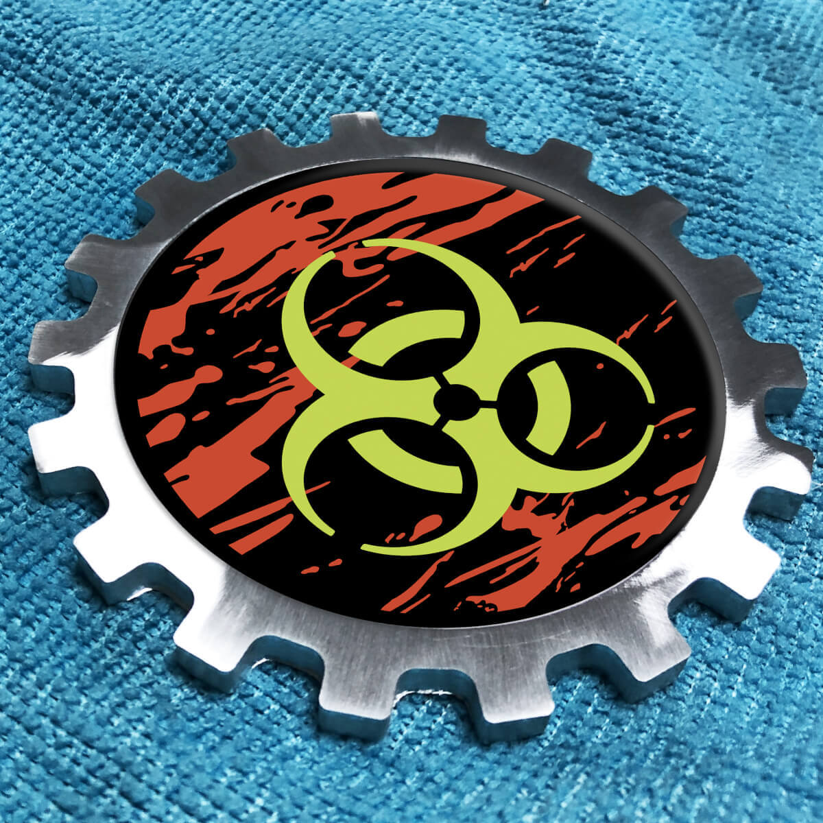 Perfect voor fans van industriële of biohazard-thema’s, dit embleem wordt wereldwijd verzonden, waaronder naar de VS, Canada en Europa. Upgrade uw stijl vandaag nog met een premium, opvallende metalen badge.