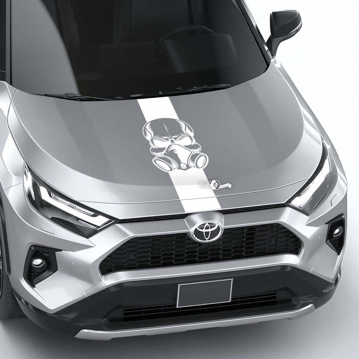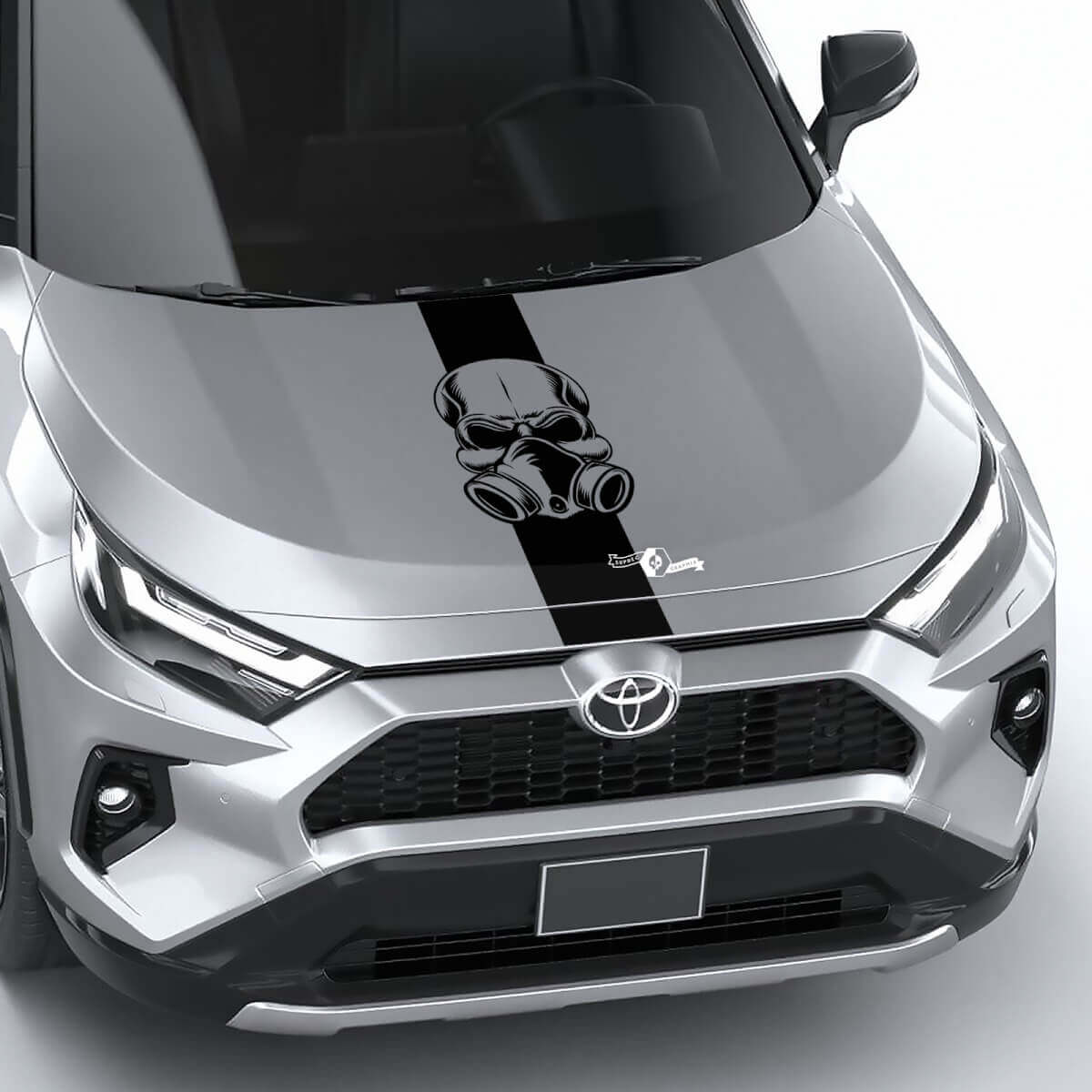 Verhoog het uiterlijk van uw voertuig met de Schedel Gasmasker Streep Universele Motorkap Vinyl Decal Grafische Sticker. Ontworpen om een gedurfde, edgy uitstraling aan elke motorkap te geven, is deze hoogwaardige vinylsticker perfect voor autoliefhebbers die willen opvallen op de weg.
