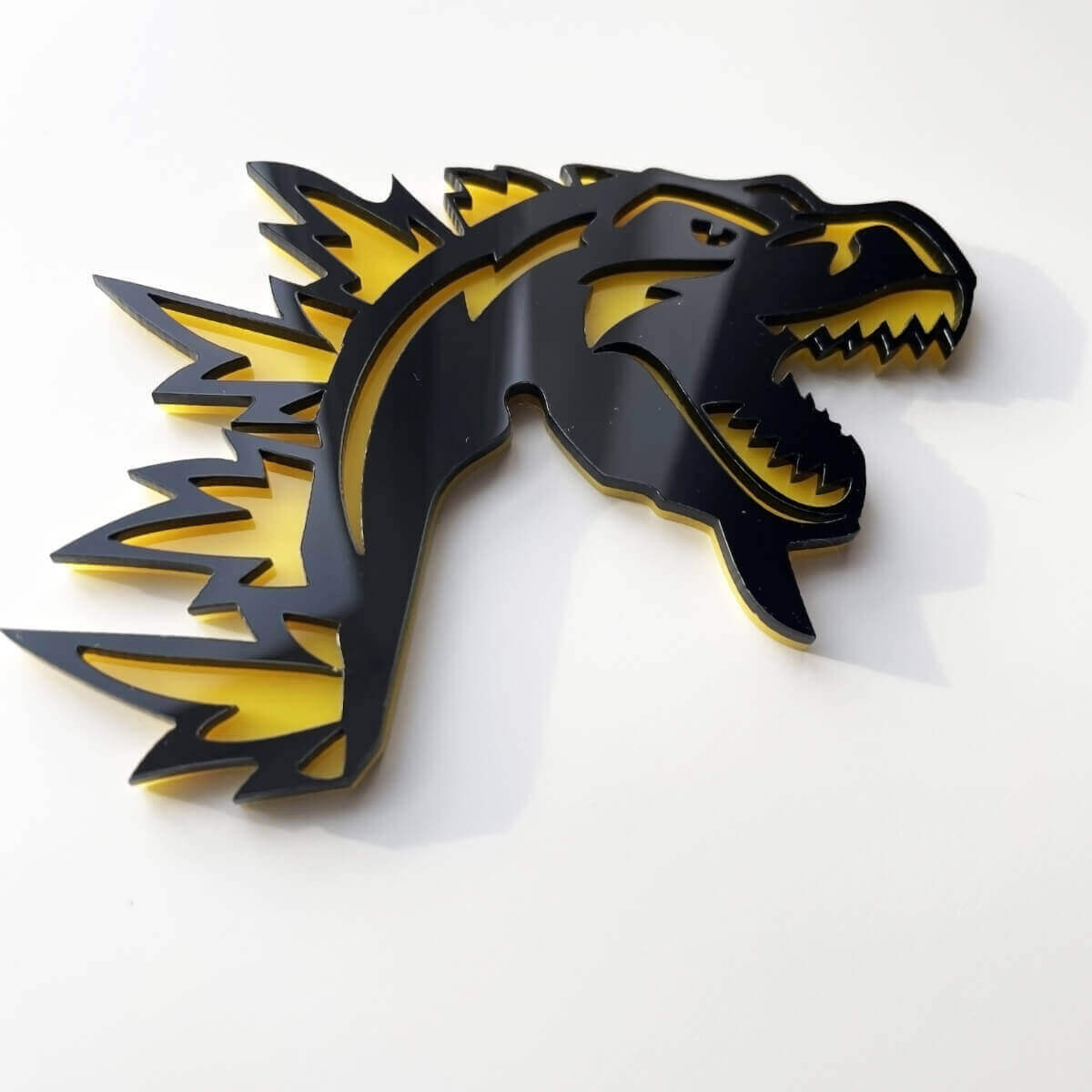 Verhoog de stijl van uw voertuig met onze Custom 3D Badge Godzilla Boos Logo Spatbord Badges Embleem. Met precisie vervaardigd, voegt dit unieke embleem een gedurfd, fel uiterlijk toe dat opvalt op elke auto.