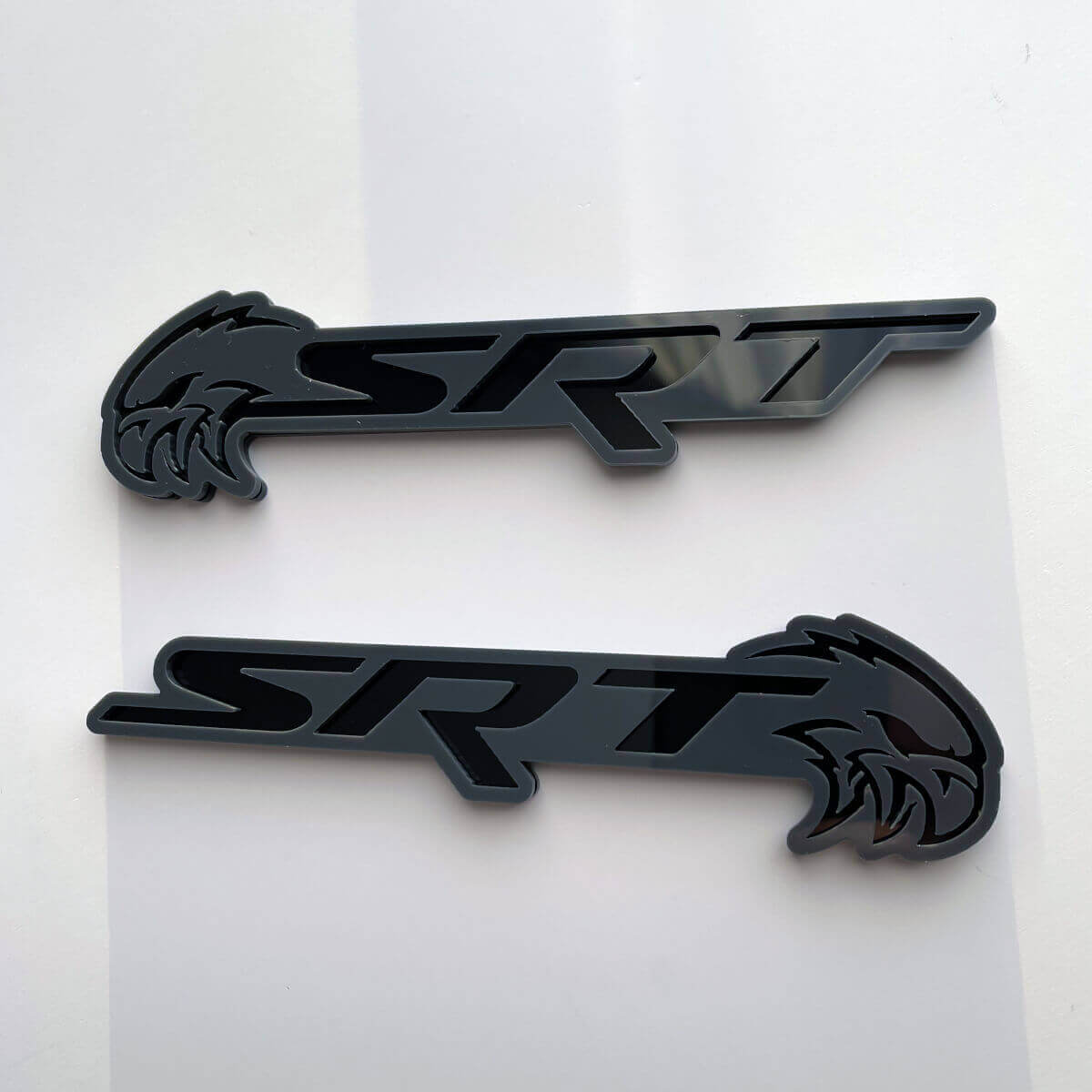 Verbeter het uiterlijk van uw voertuig met de Trackhawk 3D Badge Zwart vs Grijs Spatscherm Badges Embleem. Deze hoogwaardige vinylsticker combineert strakke zwarte en grijze tinten om uw auto een gedurfde, op maat gemaakte uitstraling te geven.
