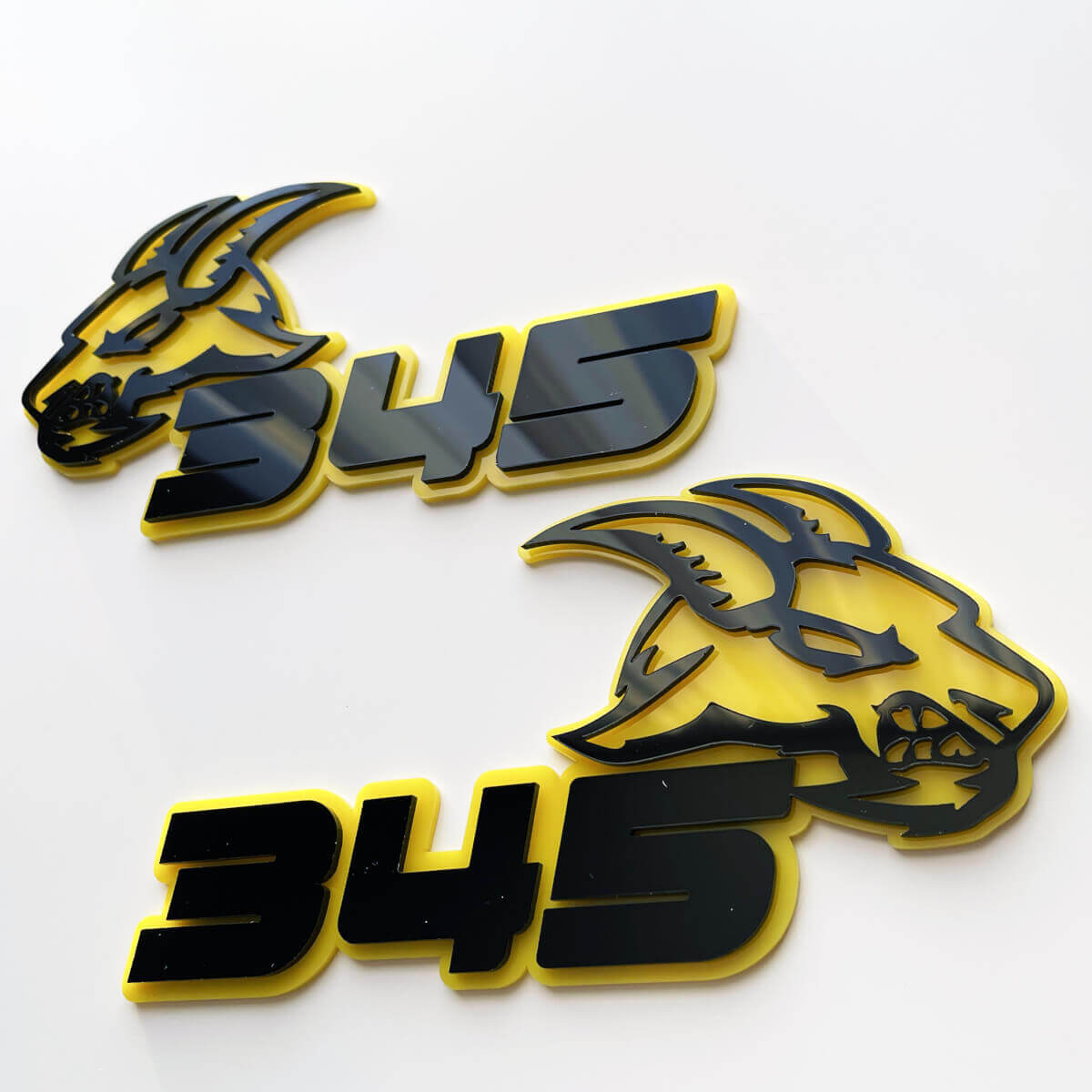 Geit 345 HEMI 3D-badge zwart versus geel spatbordbadges embleem