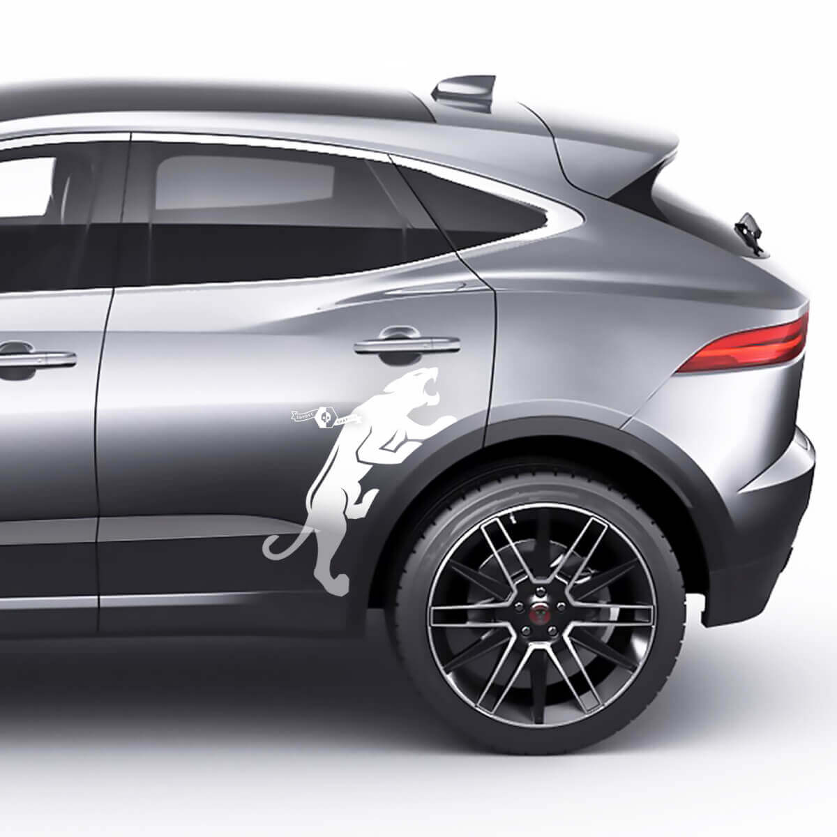 Verhoog de stijl van uw Jaguar met onze Achterzijwielboog Graphics decal sticker. Ontworpen om perfect te passen op het wielbooggebied, voegt deze hoogwaardige vinylsticker een gestroomlijnde en sportieve uitstraling toe aan uw voertuig.