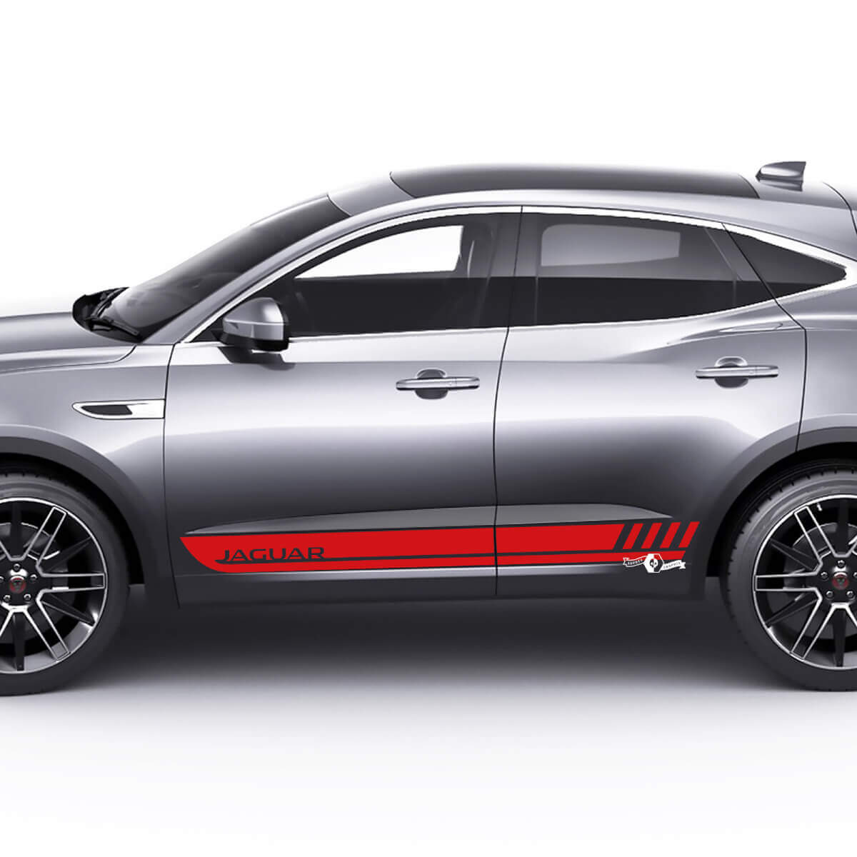 Upgrade uw Jaguar E-pace met onze Rocker Panel Zijgrafieken decal sticker, ontworpen om een stijlvolle en sportieve uitstraling aan uw voertuig toe te voegen.
