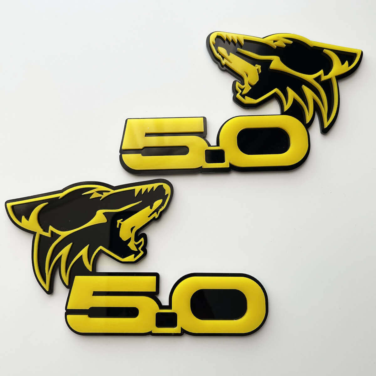 Perfect voor autoliefhebbers die hun rit willen personaliseren met een krachtig 3D embleem. Bestel vandaag nog uw COYOTE 5.0 Fender Badge en rijd met stijl!