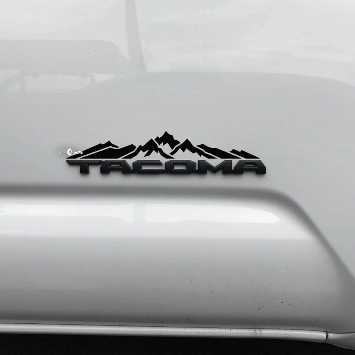 Verbeter het uiterlijk van je Toyota Tacoma met de Mountains Decal Sticker die ontworpen is om over het badge te worden aangebracht. Deze hoogwaardige vinylsticker voegt een robuuste, avontuurlijke stijl toe die het stoere karakter van je truck complimenteert.
