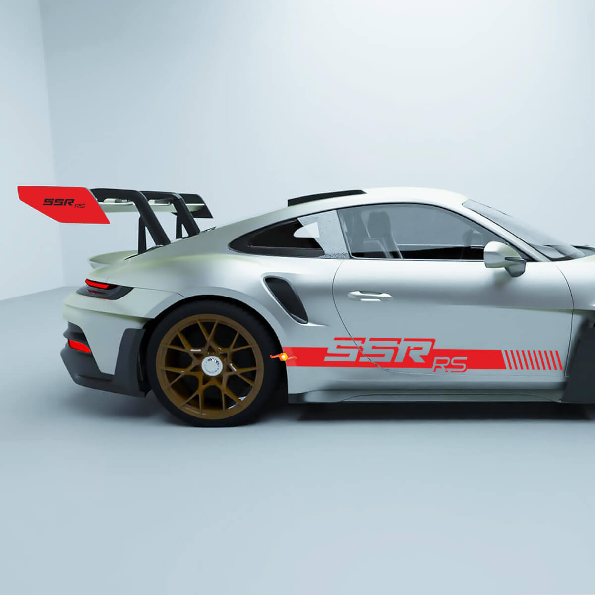 Verhoog het klassieke en sportieve uiterlijk van uw Porsche Carrera met **SSR RS Carrera Strepen Zijdeldecals**. Ontworpen voor een race-geïnspireerde uitstraling, voegen deze hoogkwalitatieve vinylstickers een strakke en dynamische touch toe aan uw Porsche.