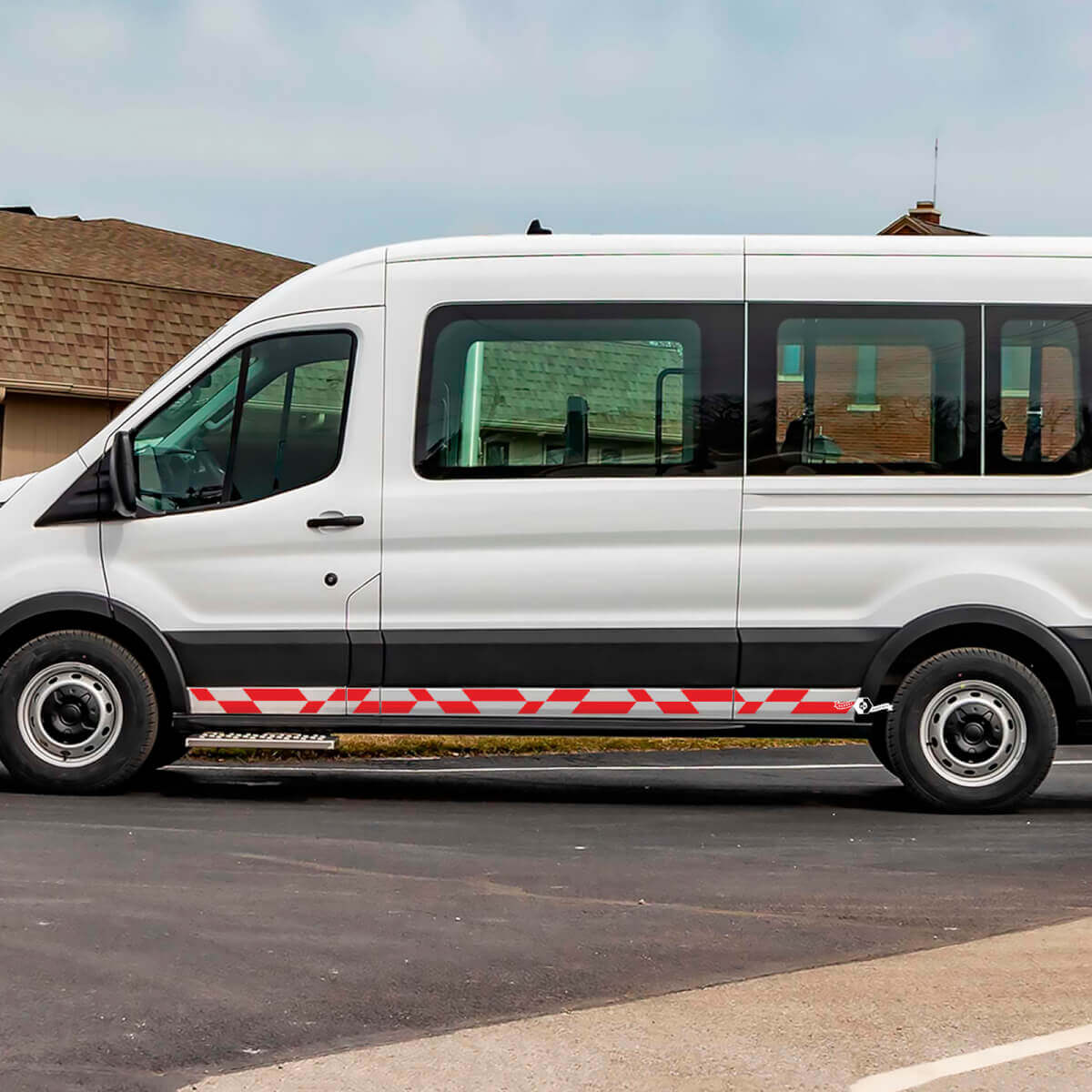 Verbeter het uiterlijk van uw Ford Transit met onze vinyl zijstrepen met ruitpatroon. Ontworpen voor gemakkelijke toepassing en langdurige duurzaamheid, geven deze decals uw voertuig een sportieve en stijlvolle uitstraling.