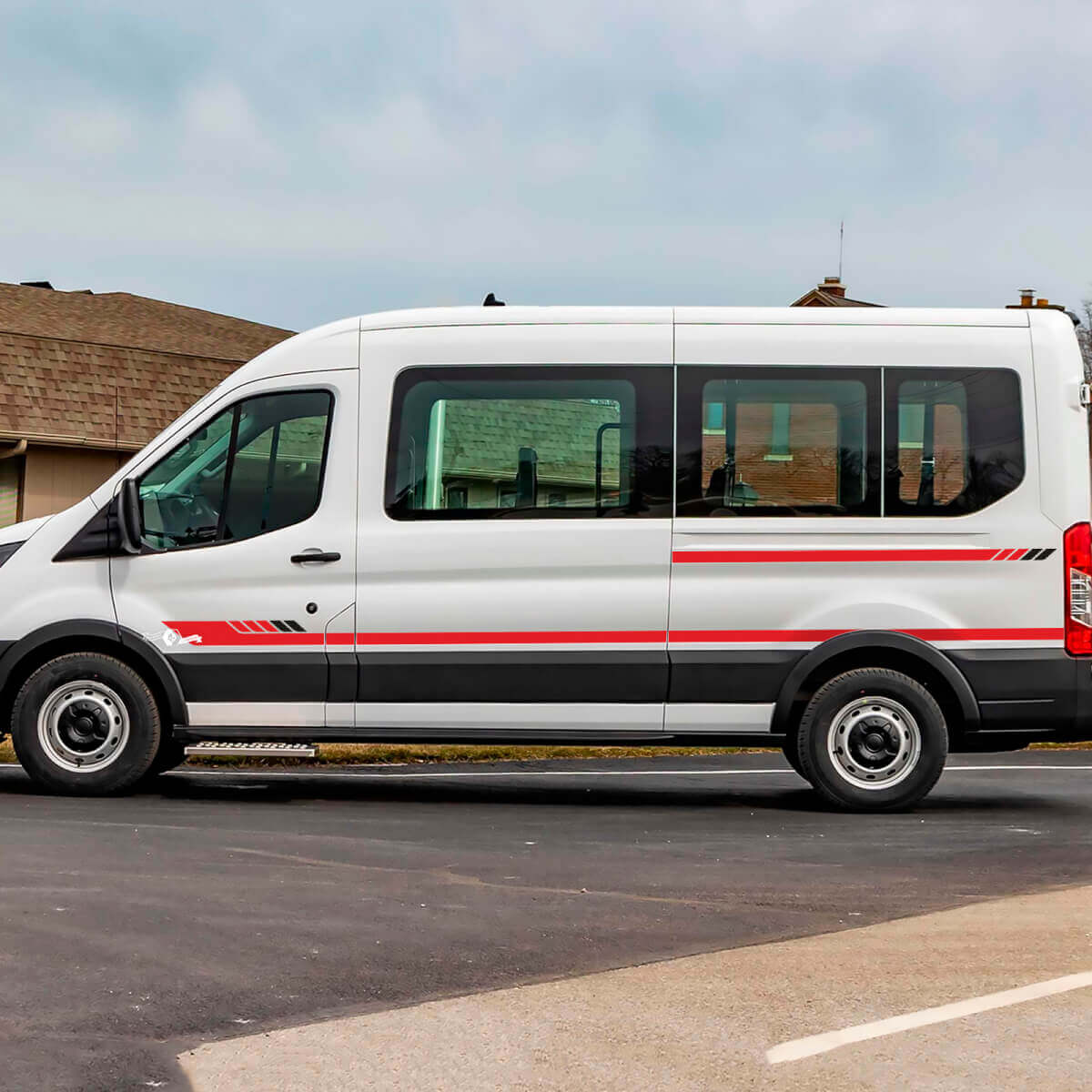 Verfraai uw Ford Transit met onze Racing Graphics Vinyl Side Stripes Stickers. Ontworpen voor duurzaamheid en stijl, geven deze stickers uw voertuig een gestroomlijnde, sportieve uitstraling.