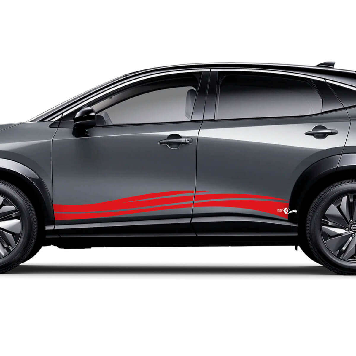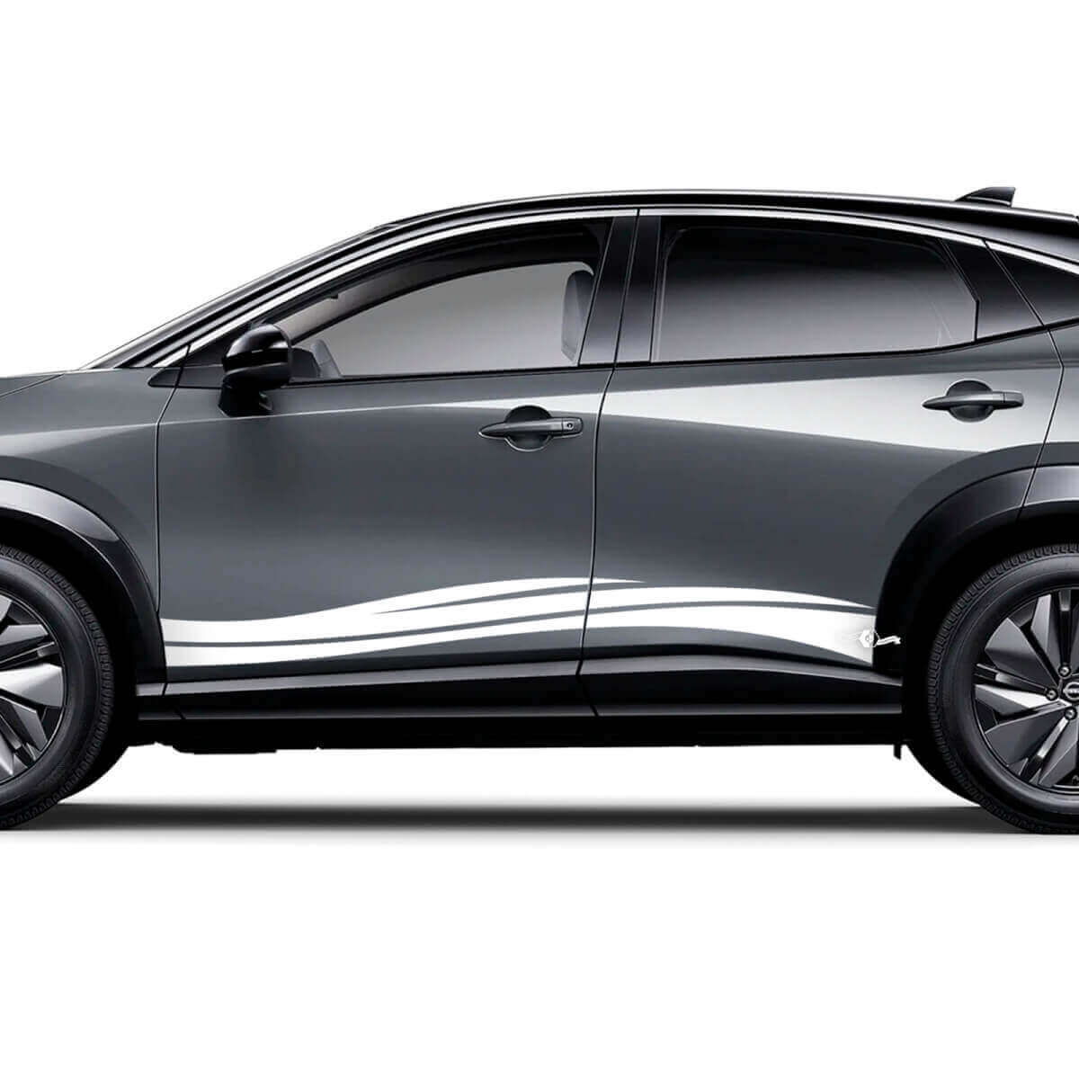 Verhoog uw Nissan ARIYA met de Sides Universal Wave Graphics Decal Kit. Ontworpen voor een perfecte pasvorm, voegt deze vinyl decal set een gestroomlijnd, modern golfpatroon toe dat de stijl van uw voertuig complimenteert.