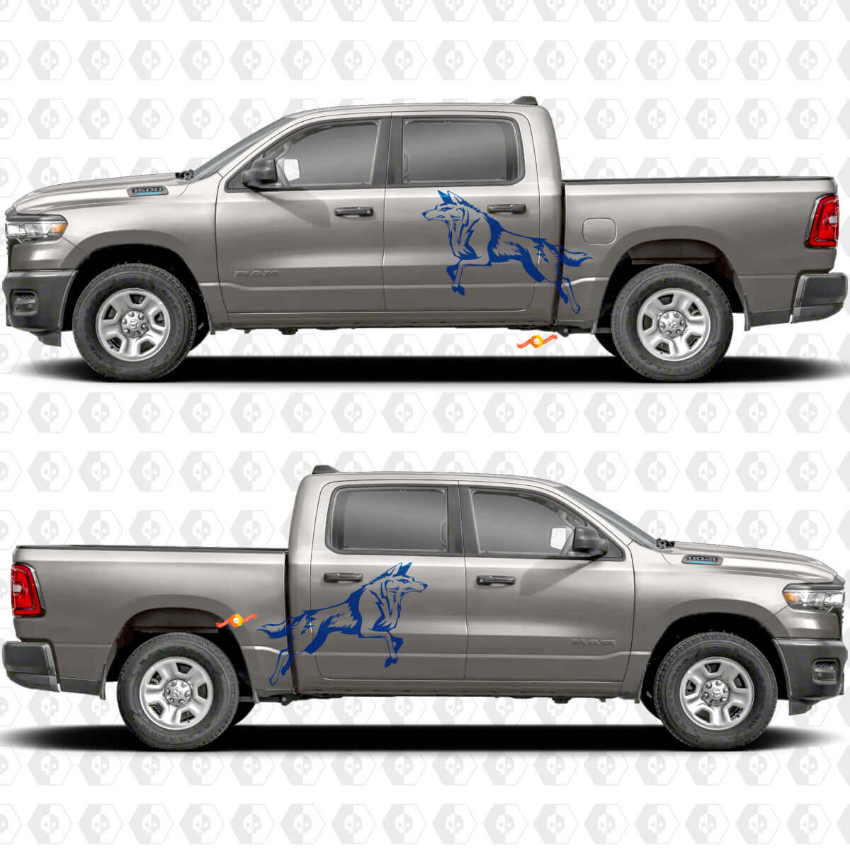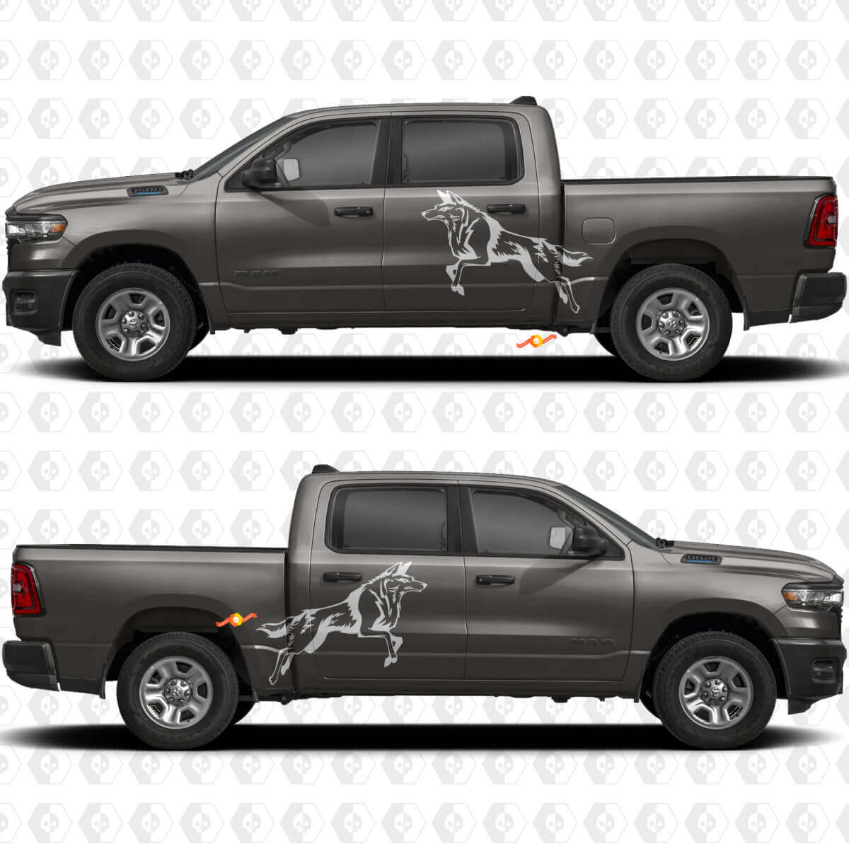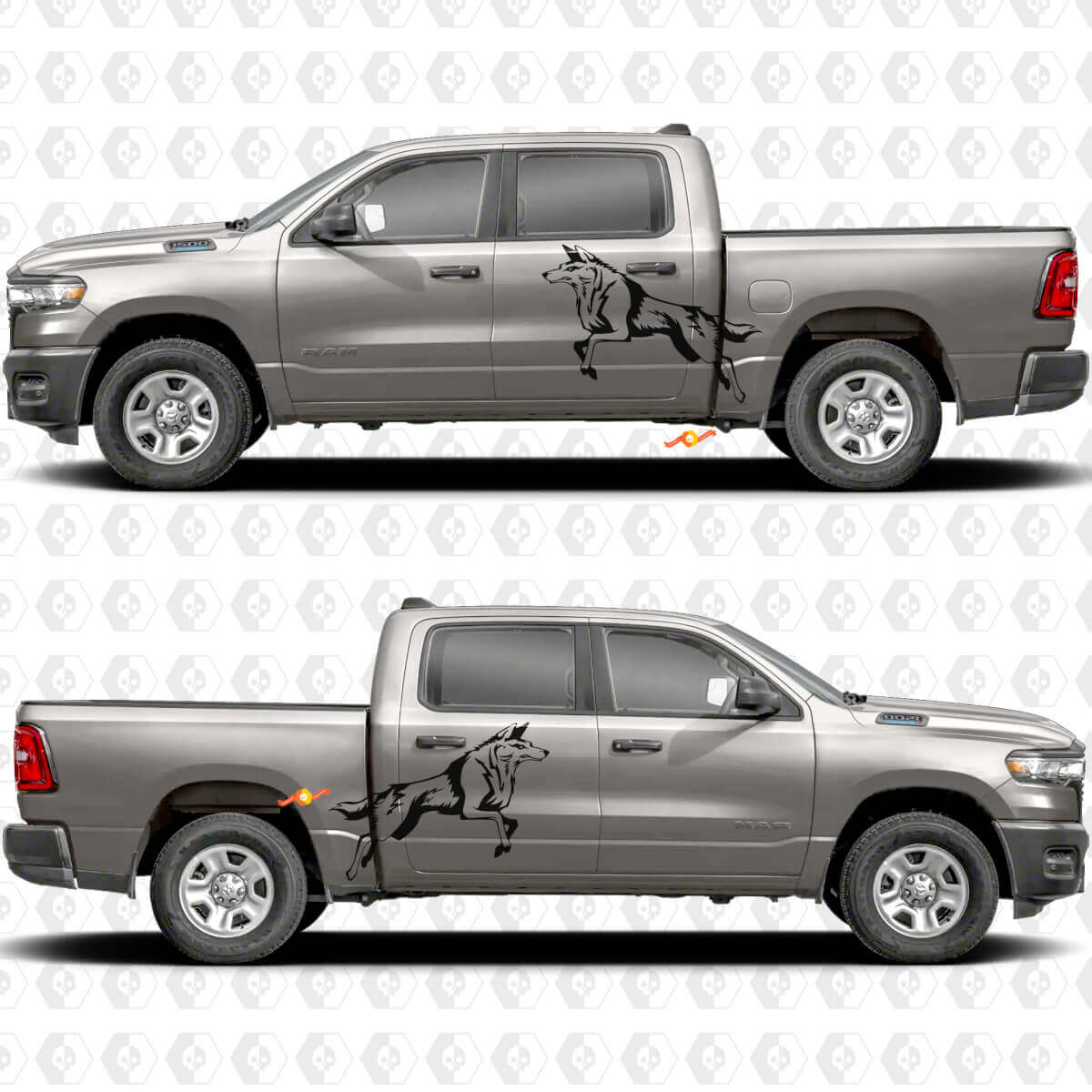 Transformeer uw vrachtwagen met deze opvallende wolf splash decals en maak elke rit stijlvoller en persoonlijker.