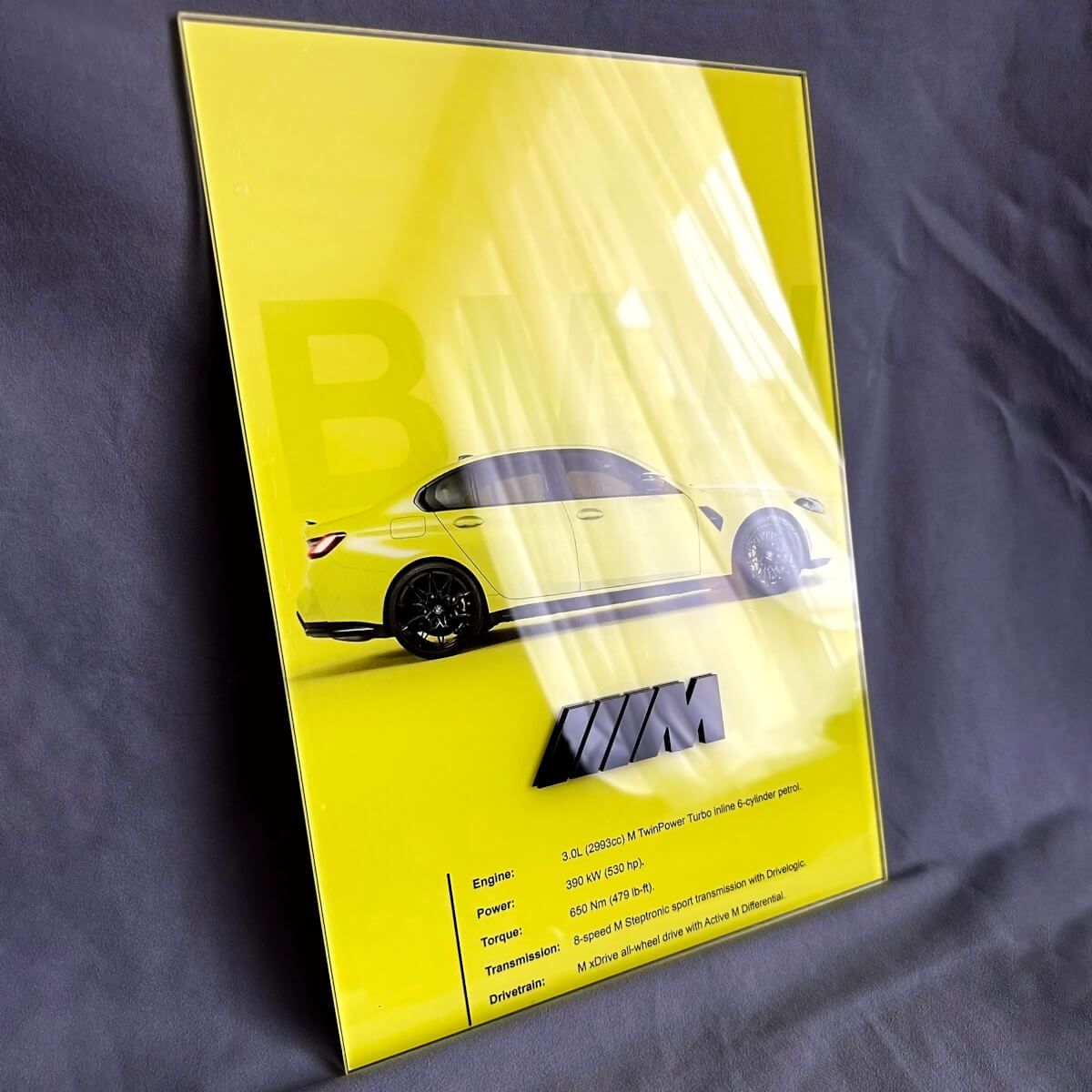 Verfraai uw garage of mancave met dit BMW M3 G80 Glossy Acrylic Wall Art Panel. Ontworpen voor autoliefhebbers, heeft het een strak, hoogglanzend oppervlak dat de iconische BMW M3 G80-stijl benadrukt.