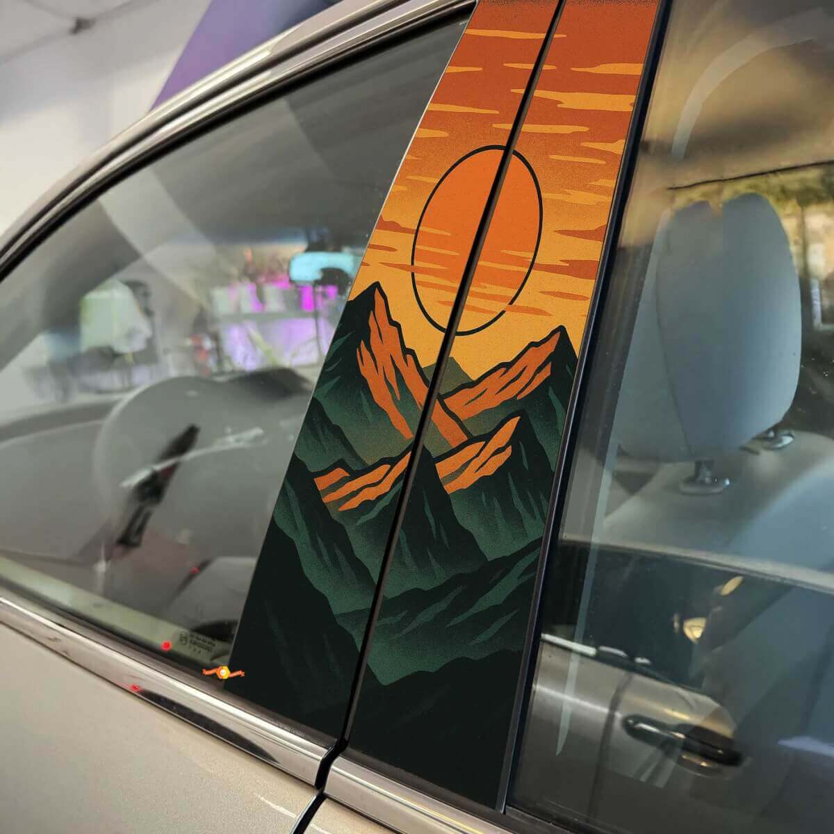 Transformeer uw voertuig met de charmante Retro Mountains Sunset Pillar Doors Vinyl Decal Sticker. Deze stijlvolle decal toont een prachtig ontworpen bergketen tegen een levendige zonsondergang als achtergrond, perfect om een vleugje door de natuur geïnspireerde kunst toe te voegen aan de pilaar deuren van uw auto. Of u nu uw liefde voor het buitenleven wilt tonen of gewoon de uitstraling van uw voertuig wilt verbeteren, deze decal biedt een strak, opvallend uiterlijk.