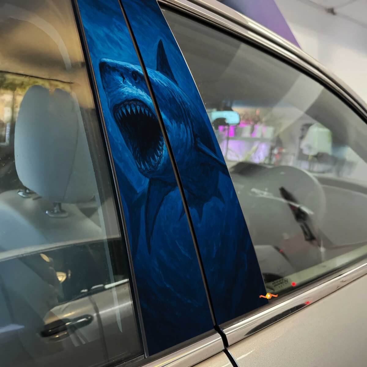 Transformeer uw voertuig met de felle en opvallende Great White Shark Style Pilaardeuren Vinyl Decal Sticker. Ontworpen om een gedurfde, door de oceaan geïnspireerde toets aan de zuilen van uw auto toe te voegen, maakt deze vinylsticker een krachtig statement dat perfect is voor haaienliefhebbers en creatieve autoliefhebbers.