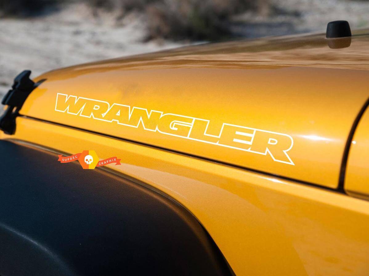 Compleet bestaat uit 2 Wrangler Chrome Vinyl Stickers Decal JEEP WRANGLER Motorkap