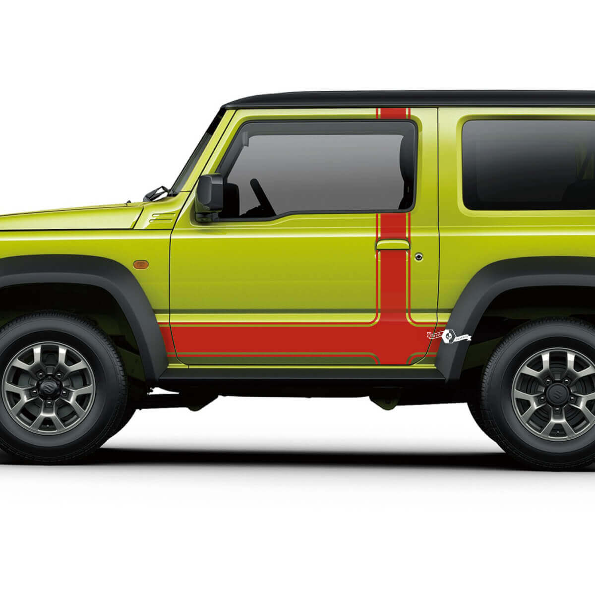 Verbeter het uiterlijk van uw Suzuki JIMNY met onze Side Door Stripes Decal, ontworpen voor een perfecte pasvorm en een stijlvolle uitstraling.