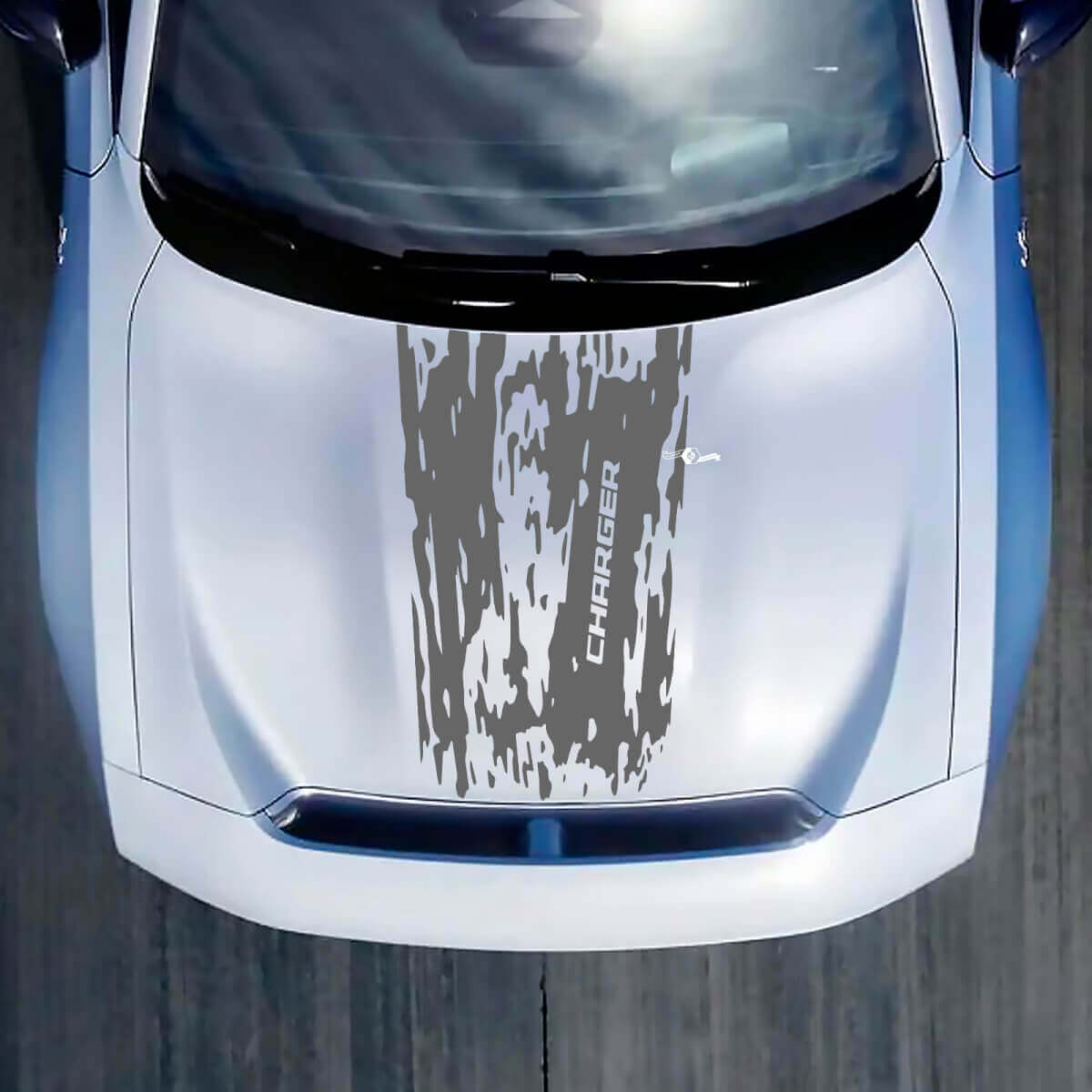 Verfraai het uiterlijk van uw Dodge Charger Electric met onze Versleten Motorkap Decal Sticker. Speciaal ontworpen voor Dodge Charger modellen, geeft deze decal een robuuste, unieke uitstraling aan de motorkap van uw voertuig.