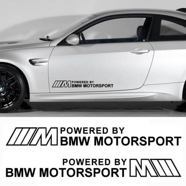 Kies een sticker en mis de kans niet om je saaie deur te decoreren met vinyl decor met een BMW sportsticker. Decoreer je autodeur met deze originele vinylsticker, gemaakt voor echte BMW Motorsport fans. Twee stickers, ontworpen voor de linker- en rechterzijde, vormen een spectaculair ontwerp met het logo van drie verticale schuine strepen en de inscriptie powered by BMW Motorsport.