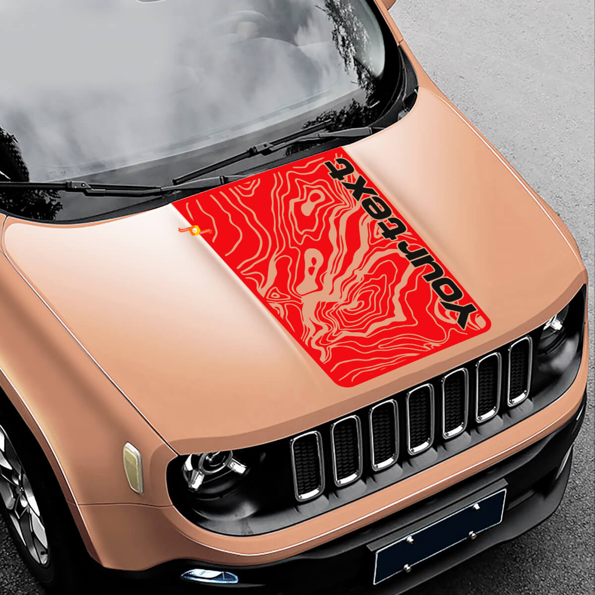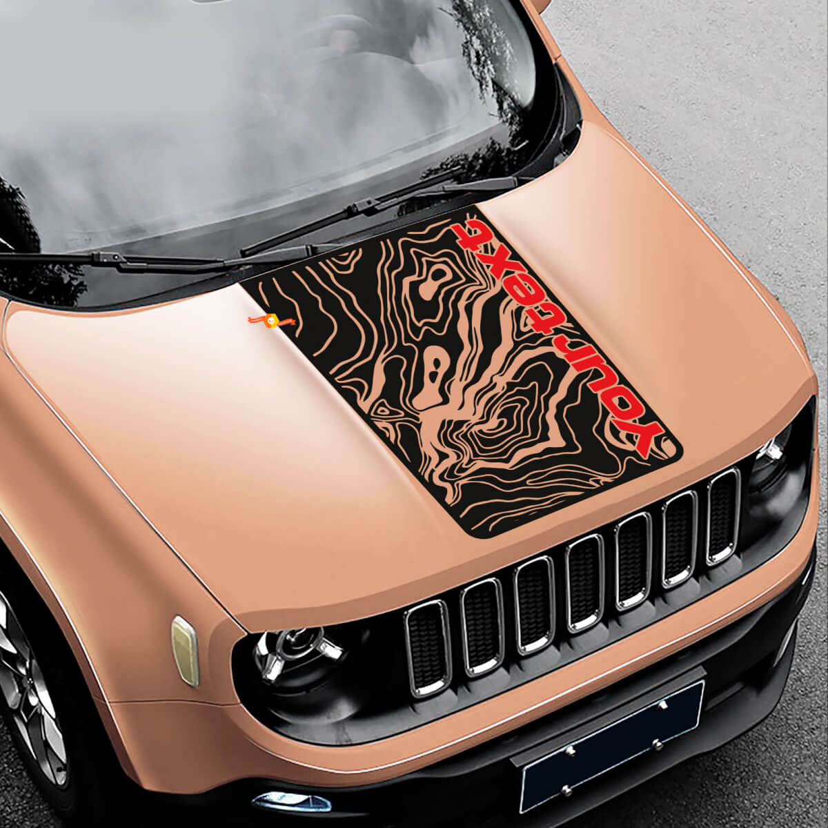 Verhoog de stijl van uw Jeep Renegade met onze Topografische Kaart Motorkap Vinyl Sticker. Deze unieke sticker geeft een robuuste, avontuurlijke uitstraling geïnspireerd op gedetailleerde topografische kaarten.
