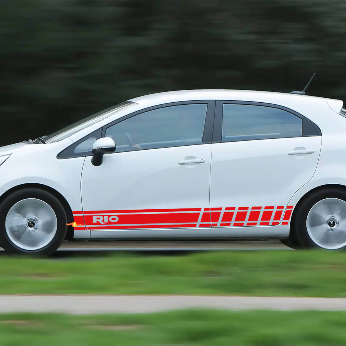 Upgrade het uiterlijk van je Kia Rio met onze Side Racing Stripes vinyl decal sticker. Ontworpen voor een perfecte pasvorm, geven deze decals een sportieve uitstraling aan je voertuig, waardoor het opvalt op de weg.