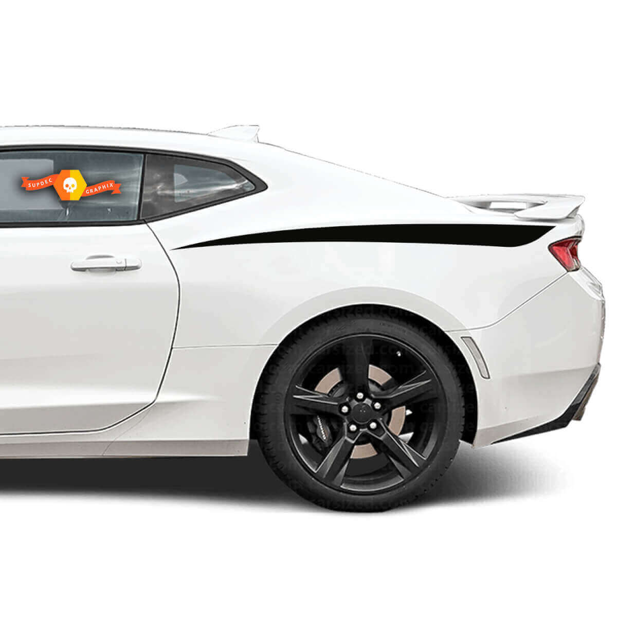 Maak kennis met de decoratieve grafische strepen die op het achterste deel van de carrosserie kunnen worden geplakt in de vorm van een scherp accent voor de Chevrolet Camaro! Deze stijlvolle, unieke strepen zijn bovenop het achterspatbord gemonteerd en geven uw auto een dynamische en agressieve uitstraling. De kleurenkeuze is onbeperkt en er zijn ook unieke structuurfilms en matte of glanzende afwerkingsstijlen beschikbaar. Creëer een uniek ontwerp en versier uw Camaro zoals u altijd al heeft gedroomd!
