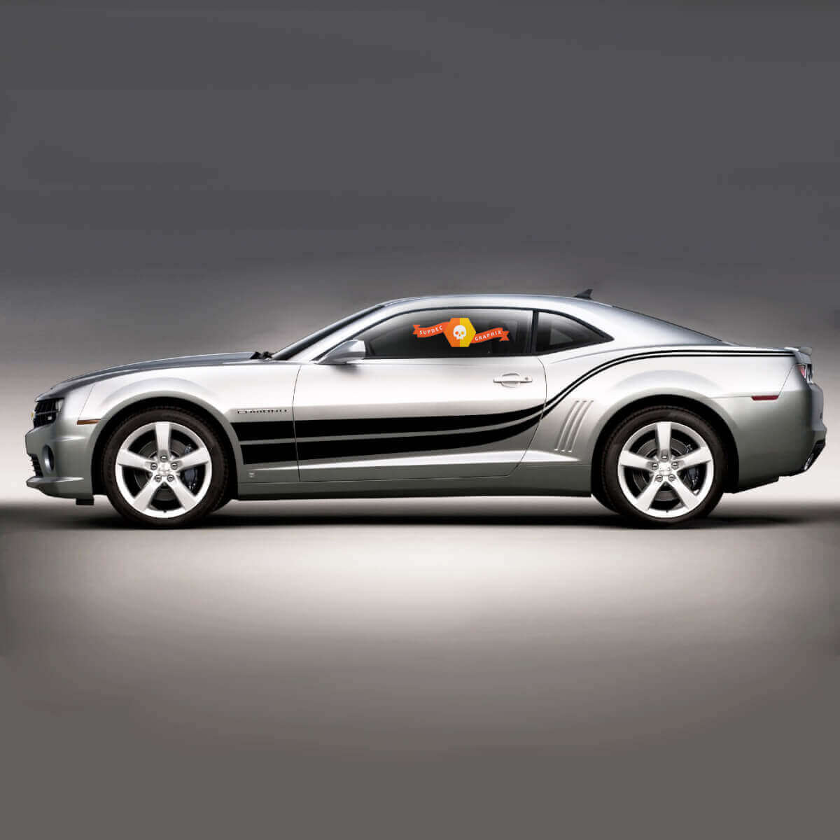 Upgrade vandaag nog het zijaanzicht van uw Camaro met deze opvallende dubbele golfstrepen en val overal op waar u gaat!