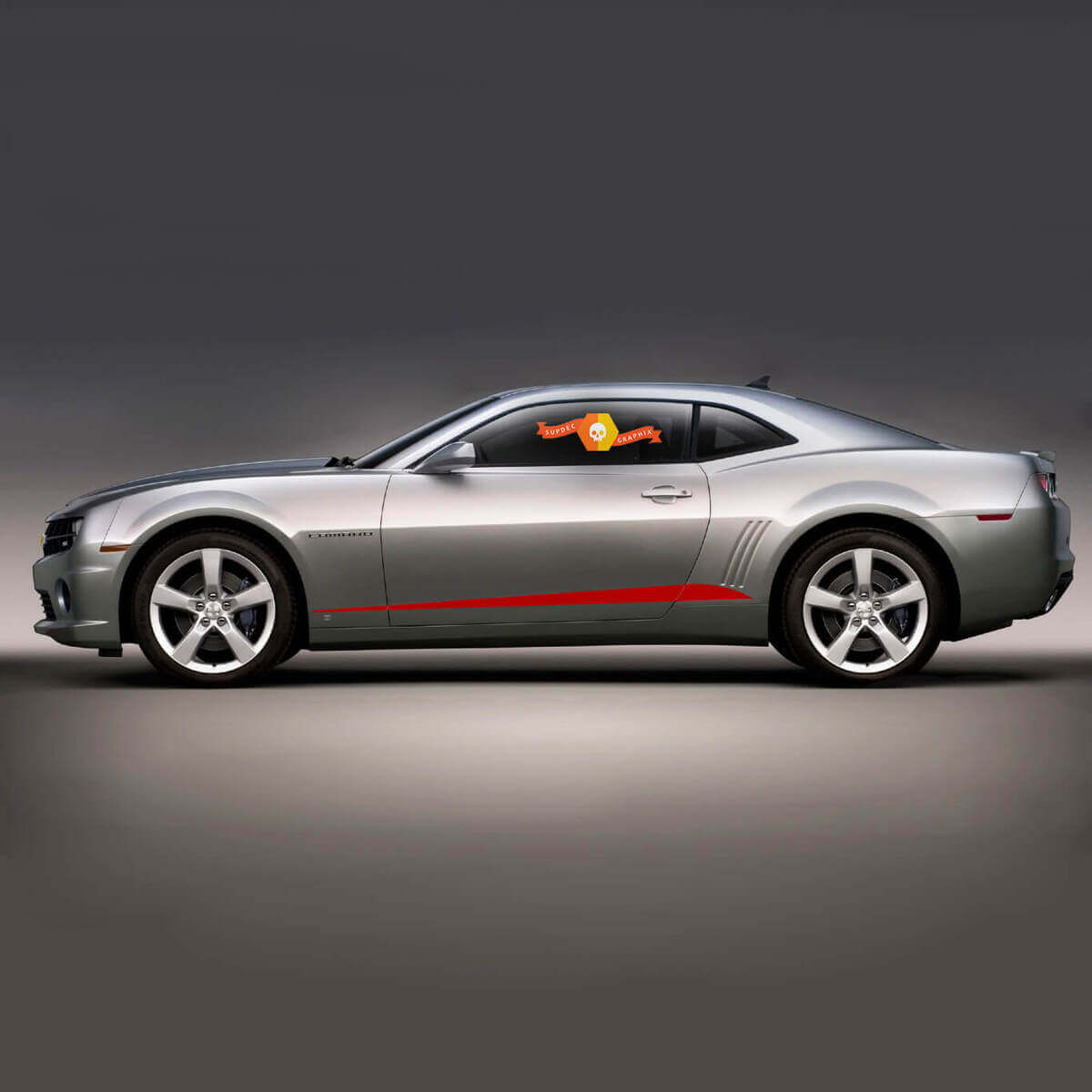 Vinylstrepen voor de deuren en de bovenzijde van de dorpels voor de Chevrolet Camaro 2010-2015 geven uw auto een stijlvolle en dynamische uitstraling. Deze strepen zijn ontworpen om op de zijpanelen en de bovenkant van de drempels te worden aangebracht, waardoor het sportieve karakter van uw Camaro wordt benadrukt en een spectaculair accent wordt toegevoegd.