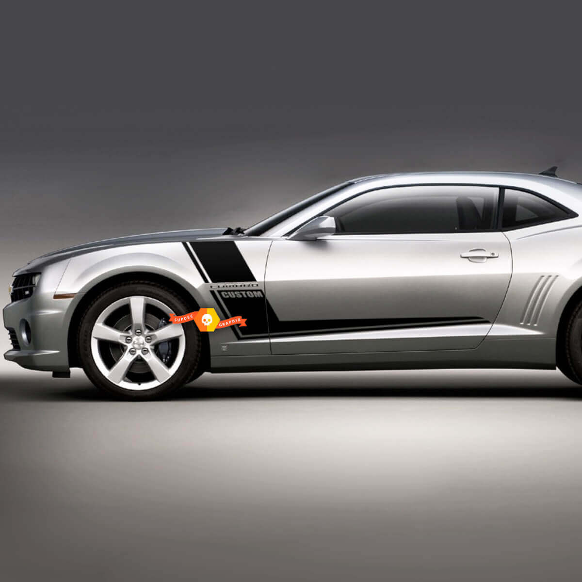 Een sticker met aangepaste tekst en kleur voor je Chevrolet Camaro is de perfecte manier om persoonlijkheid en stijl aan je auto toe te voegen. Deze sticker bevat zijhockeystrepen en Camaro-tekst (je kunt de tekst veranderen) die je auto een dynamische en sportieve uitstraling geven.