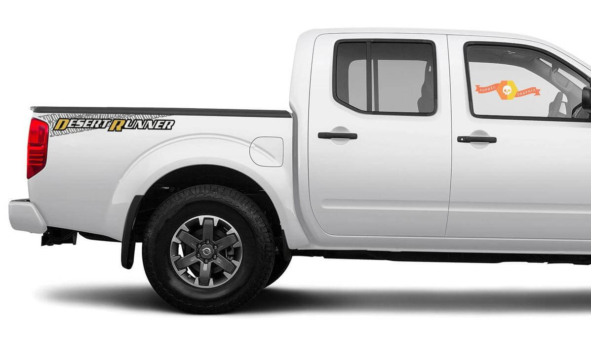 Verfraai uw Nissan truck met deze set Desert Runner vinyl zijstrepen voor de laadbak. Ontworpen om uw voertuig een robuuste en stijlvolle uitstraling te geven, zijn deze stickers perfect voor Nissan truck liefhebbers.