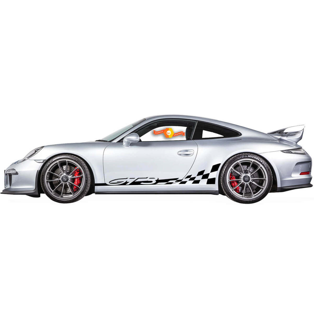 Verfraai uw Porsche 911 GT3 met onze Checkered Side Stripes Kit Decal Sticker. Speciaal ontworpen om perfect te passen bij de strakke lijnen van uw auto, voegen deze vinylstickers een sportief en uniek geruit patroon toe, perfect voor autoliefhebbers die op zoek zijn naar een gedurfde uitstraling.